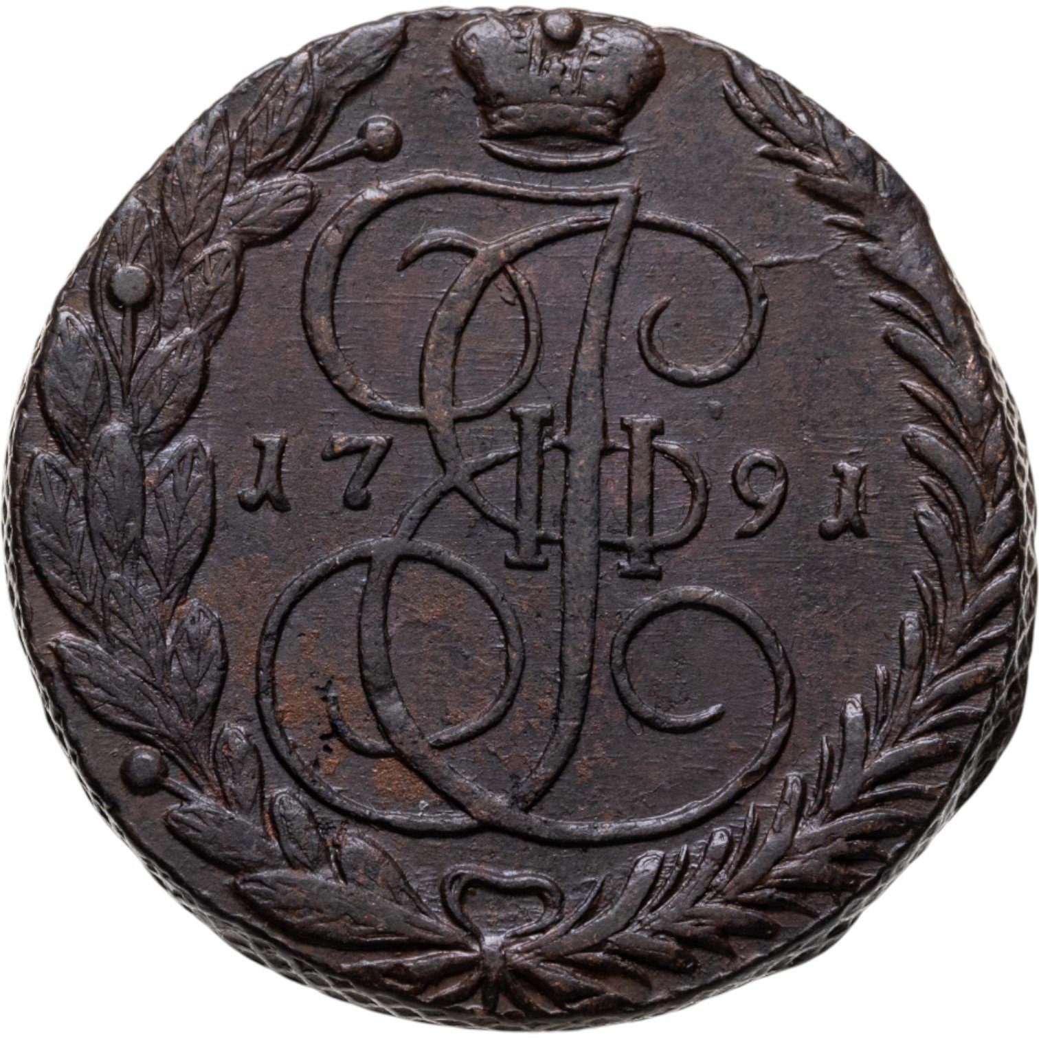В центре изображён вензель Екатерины II. Над вензелем - императорская корона. По обеим сторонам от вензеля цифры даты выпуска монеты: слева - «17», справа - «89» (1789 год). Вокруг центрального изображения, вдоль канта, изображён венок из лавровой и пальмовой ветвей, которые, в нижней части, перевязаны лентой на узел бантом.