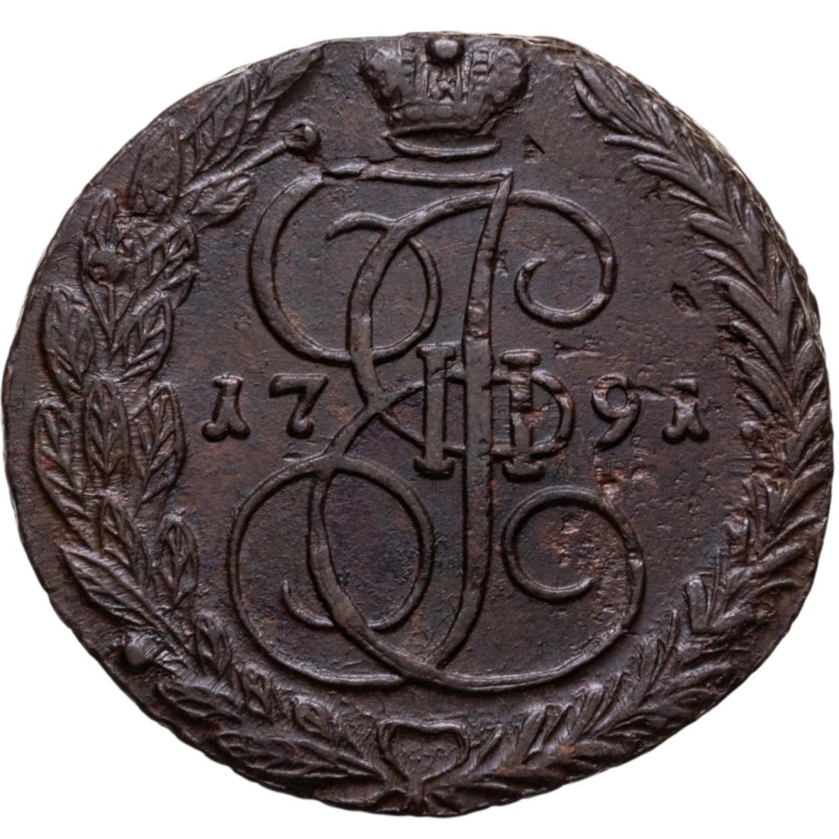 В центре изображён вензель Екатерины II. Над вензелем - императорская корона. По обеим сторонам от вензеля цифры даты выпуска монеты: слева - «17», справа - «89» (1789 год). Вокруг центрального изображения, вдоль канта, изображён венок из лавровой и пальмовой ветвей, которые, в нижней части, перевязаны лентой на узел бантом.