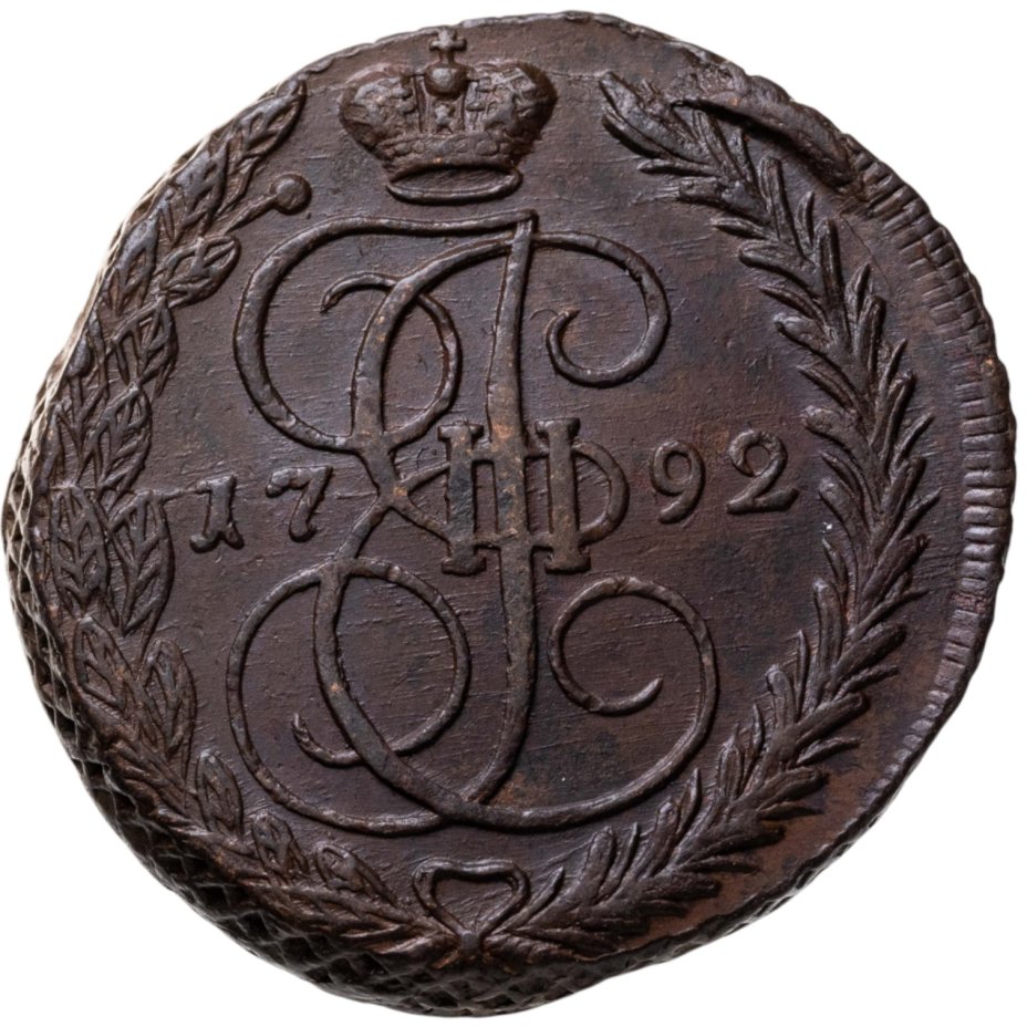 В центре изображён вензель Екатерины II. Над вензелем - императорская корона. По обеим сторонам от вензеля цифры даты выпуска монеты: слева - «17», справа - «89» (1789 год). Вокруг центрального изображения, вдоль канта, изображён венок из лавровой и пальмовой ветвей, которые, в нижней части, перевязаны лентой на узел бантом.