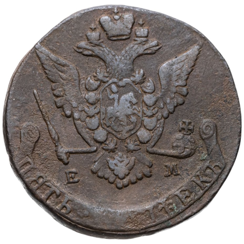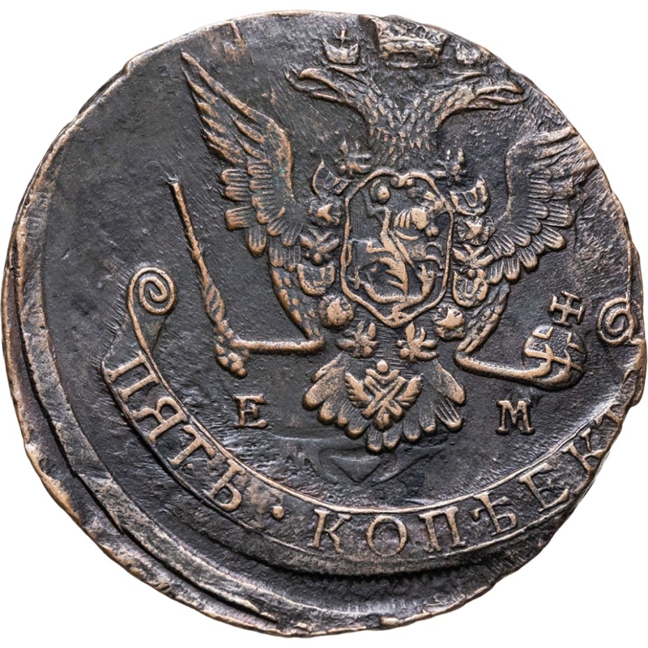 Дизайн общероссийских 5 копеек 1773 года выполнен по типу пятикопеечных медных монет 1763 г. В этом году выпуск произвёл только Екатеринбургский монетный двор (ЕМ). Пять копеек имеют сетчатый гурт, вес 51,2 гр., диаметр порядка 43 мм. Тираж составил почти 39 млн монет, стоимость монет относительно невелика: порядка тысячи рублей.