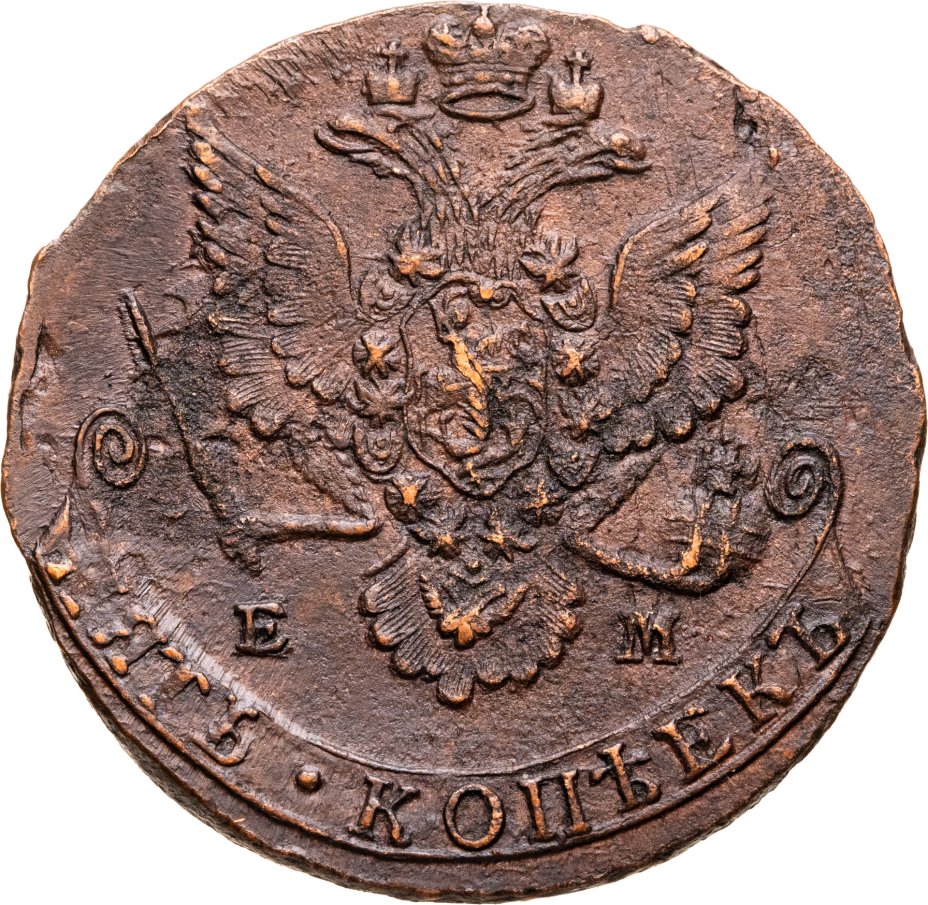 В оборот идут как портретные монеты — с профилем Екатерины II, так и с вензелем «Е» и вписанной в него цифрой II на реверсах, и другие. На реверсах изображается двуглавый орёл, святой Георгий, поражающий копьём змея, и другие.