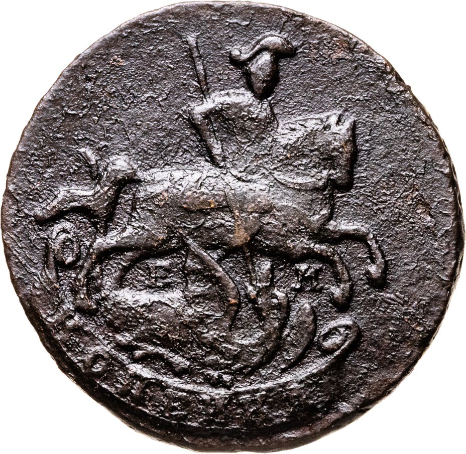 В оборот идут как портретные монеты — с профилем Екатерины II, так и с вензелем «Е» и вписанной в него цифрой II на реверсах, и другие. На реверсах изображается двуглавый орёл, святой Георгий, поражающий копьём змея, и другие.
