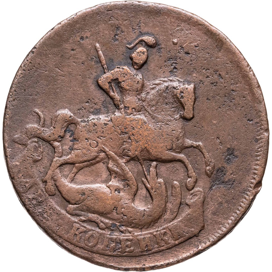 2 копейки 1757 номинал под св. Георгием, гурт сетчатый