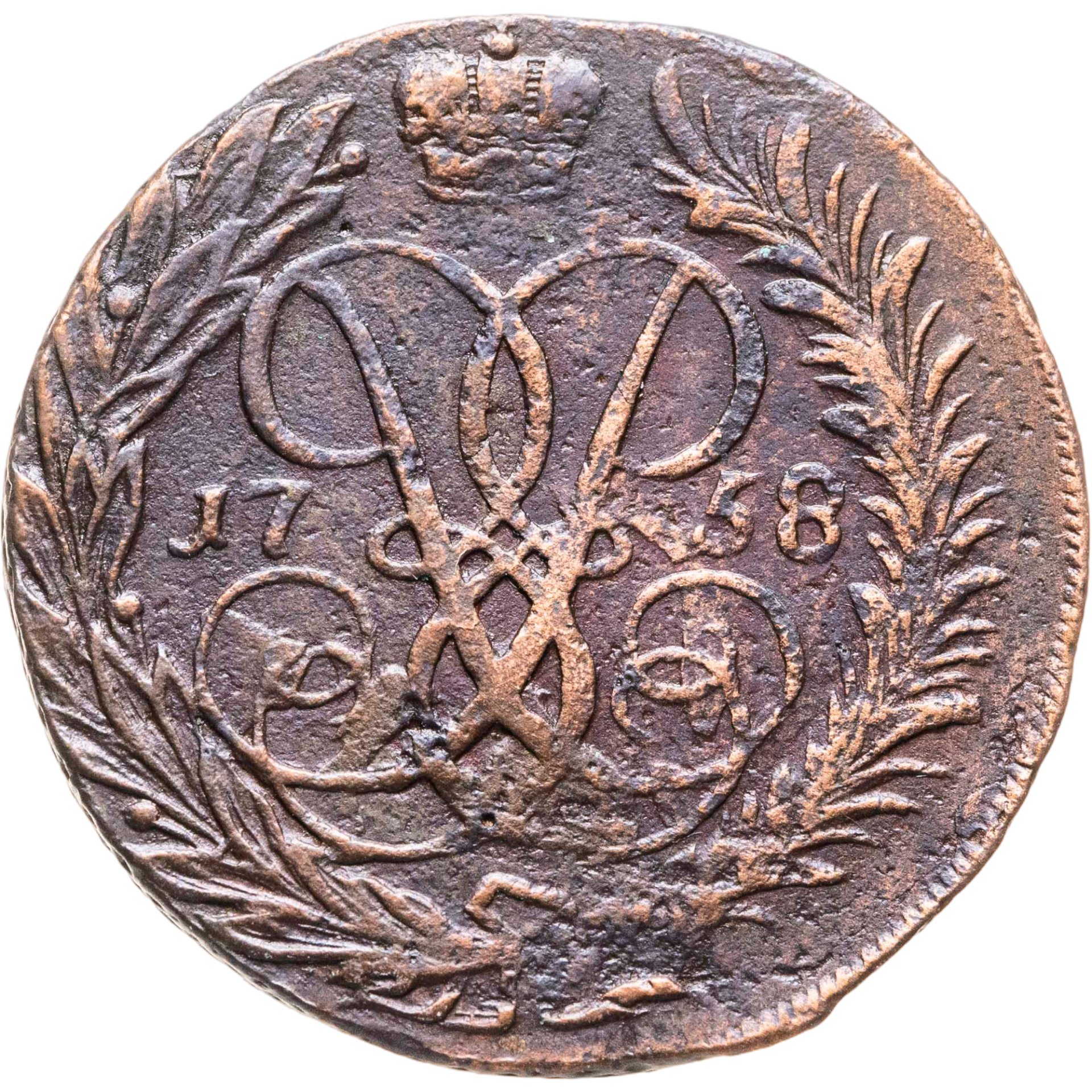 Купить 2 копейки 1758 номинал под Св. Георгием, гурт сетчатый
