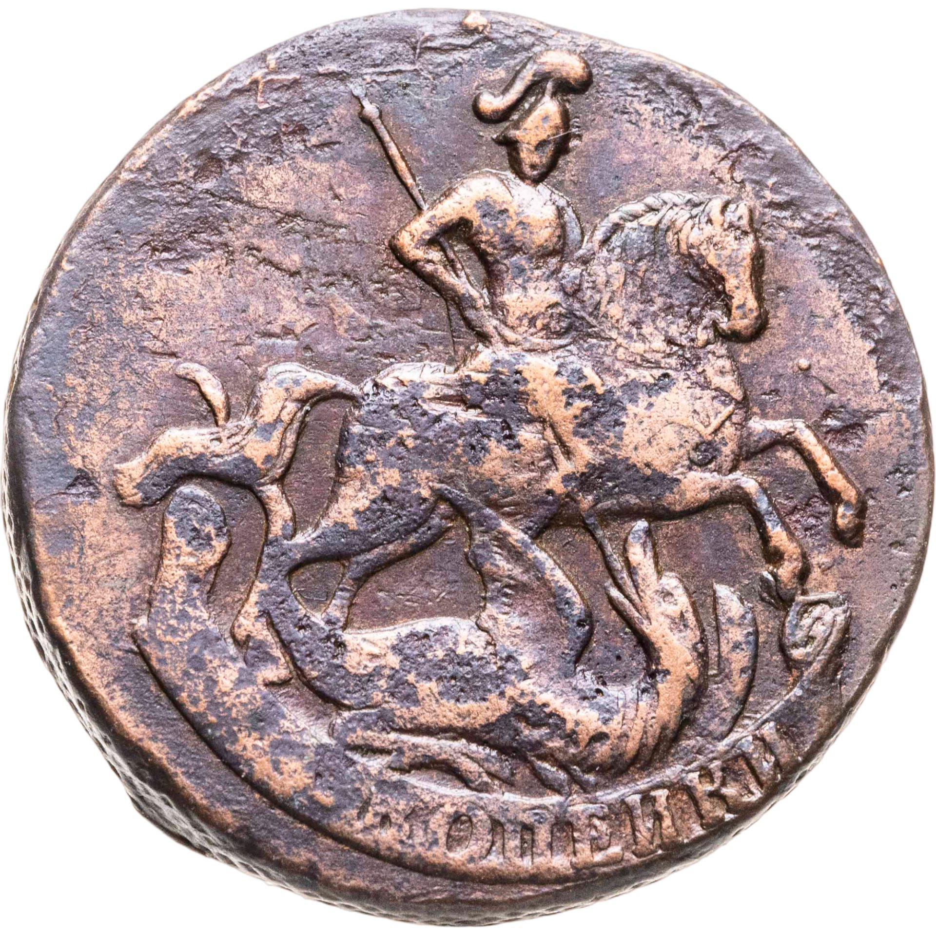 2 копейки 1758 номинал под Св. Георгием, гурт сетчатый