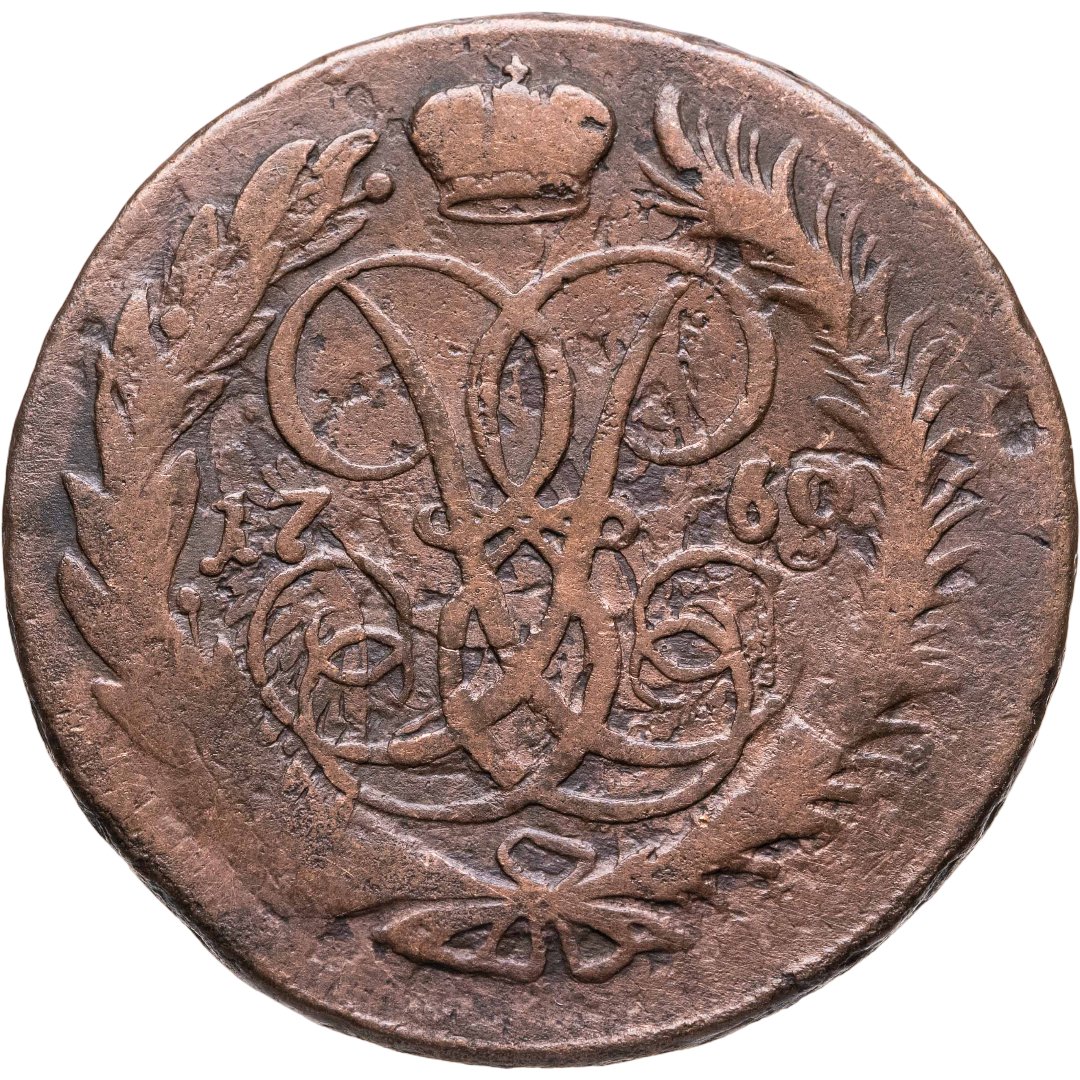 купить 2 копейки 1760 номинал под св. Георгием, гурт сетчатый, перечекан из облачной копейки