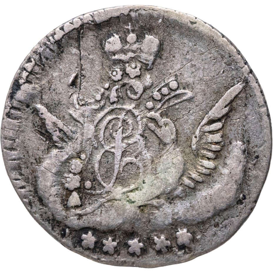 В центре изображён орёл с расправленными крыльями, сидящий на облаке и держащий в своём клюве картуш с вензелем императрицы Елизаветы I (Петровны). Изображение увенчано императорской короной. Под центральным изображением пять выпуклых счётных элементов, выполненных в виде звёзд. Звёзды обозначают (дублируют) номинал монеты.