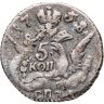 В центре изображён орёл с расправленными крыльями, сидящий на облаке и держащий в своём клюве картуш с вензелем императрицы Елизаветы I (Петровны). Изображение увенчано императорской короной. Под центральным изображением пять выпуклых счётных элементов, выполненных в виде звёзд. Звёзды обозначают (дублируют) номинал монеты.