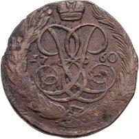 Купить 5 копеек 1760   без обозначения монетного двора