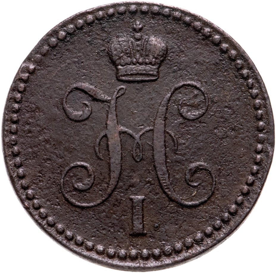 В центре вензель Николая I. Над ним Корона Российской империи. По окружности канта имеются рельефные элементы, выполненные в виде точек.