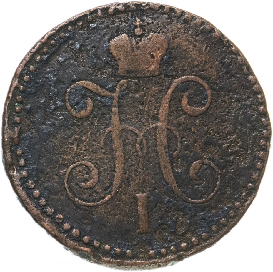 В центре вензель Николая I. Над ним Корона Российской империи. По окружности канта имеются рельефные элементы, выполненные в виде точек.