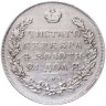 В центре надпись в четыре строки: «ЧИСТАГО»│«СЕРЕБРА»│«4 ЗОЛОТН.»│«21 ДОЛЯ.». Над надписью - императорская корона. Под надписью - прямая черта, под ней - обозначение Санкт-Петербургского монетного двора «С.П.Б.». Вдоль канта, не доходя до короны, изображен венок из лавровой и дубовой ветви, которые в нижней части переплетены лентой. По окружности канта имеются рельефные элементы, выполненные в виде зубцов.