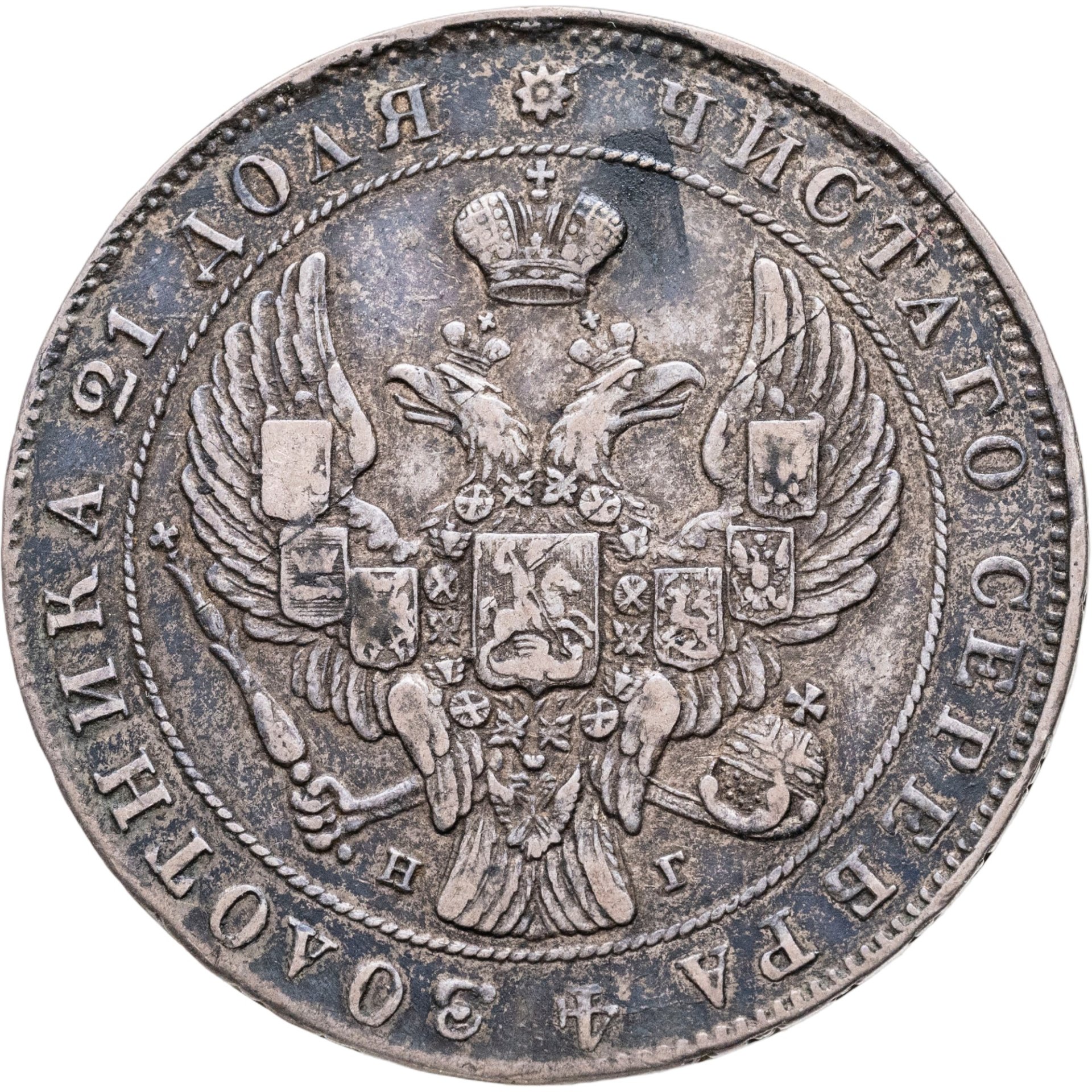 В центре изображен Государственный Герб Российской империи - двуглавый орёл, головы которого увенчаны двумя коронами, третья, большая корона над ними. На груди орла расположен Московский герб - щит с изображением Георгия Победоносца, поражающего копьем дракона. Вокруг щита орденская цепь с орденом Св. Апостола Андрея Первозванного. На крыльях изображены титульные гербы: на правом — Казанский, Астраханский и Сибирский, на левом — Польский, Таврический и Финляндский. В правой лапе орла – скипетр, в левой – держава. Под правой лапой – буква «Н», под левой – буква «Г». Инициалы минцмейстера Николая Грачева. Центральная часть отделена от остального изображения, окружностью в виде точек. За окружностью круговая надпись: «ЧИСТАГО СЕРЕБРА 4 ЗОЛОТНИКА 21 ДОЛЯ», разделенная сверху цветочной розеткой. По окружности канта имеются рельефные элементы, выполненные в виде зубцов.