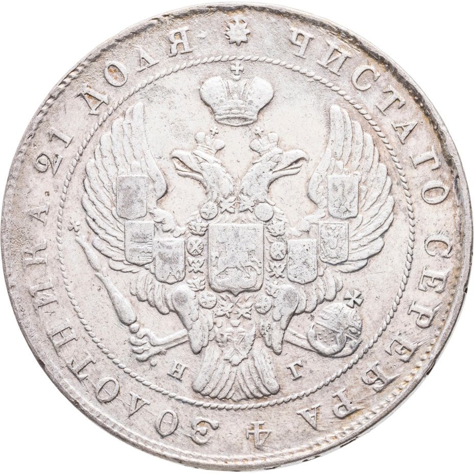 В центре изображен Государственный Герб Российской империи - двуглавый орёл, головы которого увенчаны двумя коронами, третья, большая корона над ними. На груди орла расположен Московский герб - щит с изображением Георгия Победоносца, поражающего копьем дракона. Вокруг щита орденская цепь с орденом Св. Апостола Андрея Первозванного. На крыльях изображены титульные гербы: на правом — Казанский, Астраханский и Сибирский, на левом — Польский, Таврический и Финляндский. В правой лапе орла – скипетр, в левой – держава. Под правой лапой – буква «Н», под левой – буква «Г». Инициалы минцмейстера Николая Грачева. Центральная часть отделена от остального изображения, окружностью в виде точек. За окружностью круговая надпись: «ЧИСТАГО СЕРЕБРА 4 ЗОЛОТНИКА 21 ДОЛЯ», разделенная сверху цветочной розеткой. По окружности канта имеются рельефные элементы, выполненные в виде зубцов.