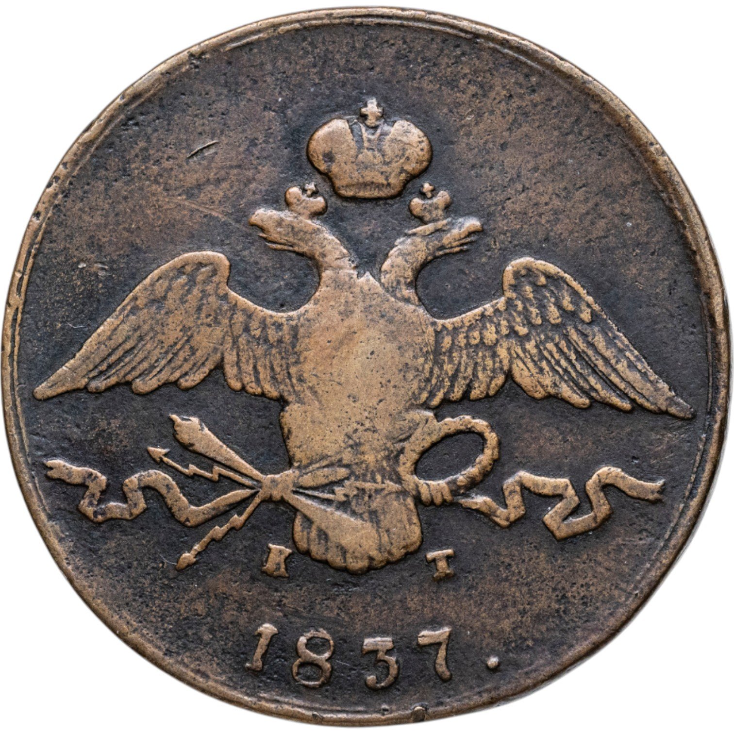 Однако всему есть простое объяснение. В первой половине XIX века в архитектуре и декоративно-прикладном искусстве везде преобладал стиль ампир, так сказать была “мода” на художество древней Греции и Рима. Монеты тоже не остались в стороне. После победы Российской Империи в 1812 г. эмблемы венка, молнии и факела гармонично смотрелись на аверсе монет.