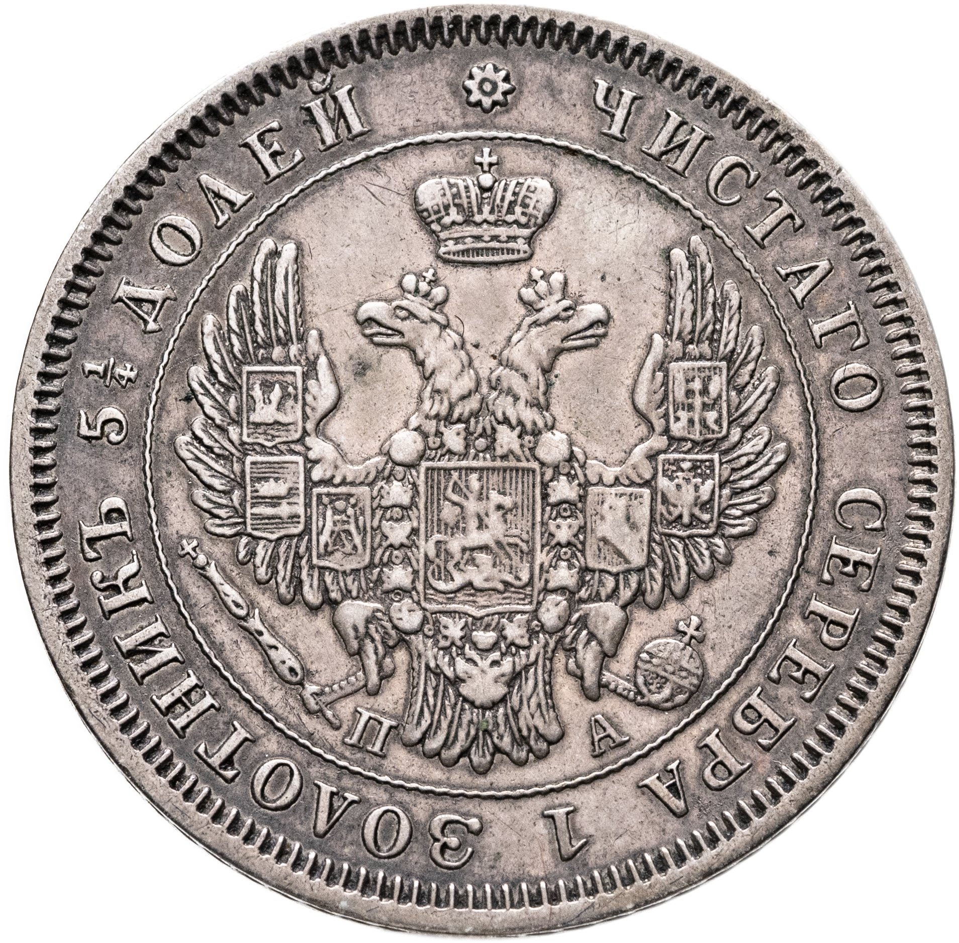 В центре изображен Государственный Герб Российской империи - двуглавый орёл, головы которого увенчаны двумя коронами, третья, большая корона над ними. На груди орла расположен Московский герб - щит с изображением Георгия Победоносца, поражающего копьем дракона. Вокруг щита орденская цепь с орденом Св. Апостола Андрея Первозванного. На крыльях изображены титульные гербы: на правом — Казанский, Астраханский и Сибирский, на левом — Польский, Таврический и Финляндский. В правой лапе орла – скипетр, в левой – держава. Под правой лапой – буква «П», под левой – буква «А». Инициалы минцмейстера Павла Алексеева. Центральная часть отделена от остального изображения, окружностью в виде точек. За окружностью круговая надпись: «ЧИСТОГО СЕРЕБРА 1 ЗОЛОТНИК 5 1/4 ДОЛЕЙ», разделенная сверху цветочной розеткой. По окружности канта имеются рельефные элементы, выполненные в виде зубцов.