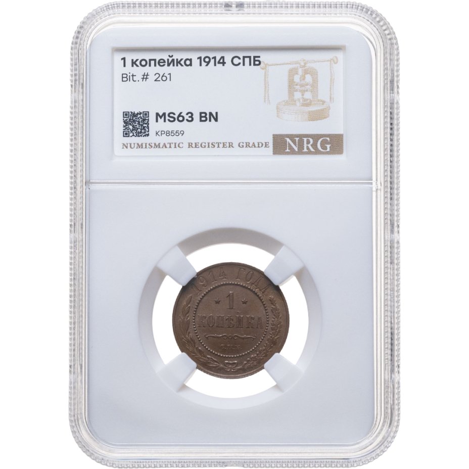 купить 1 копейка 1914 СПБ, в слабе NRG MS63 BN