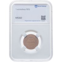1 копейка 1915 в слабе Монетник.ру MS60