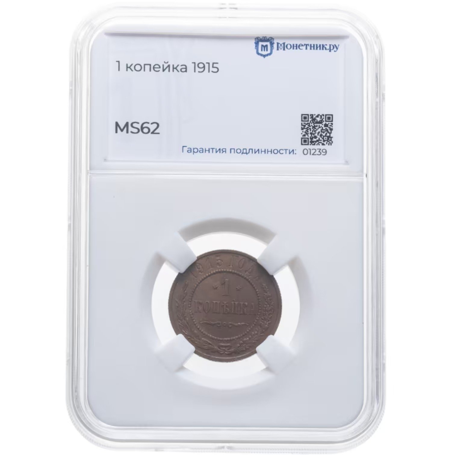 Купить 1 копейка 1915 в слабе Монетник.ру MS62