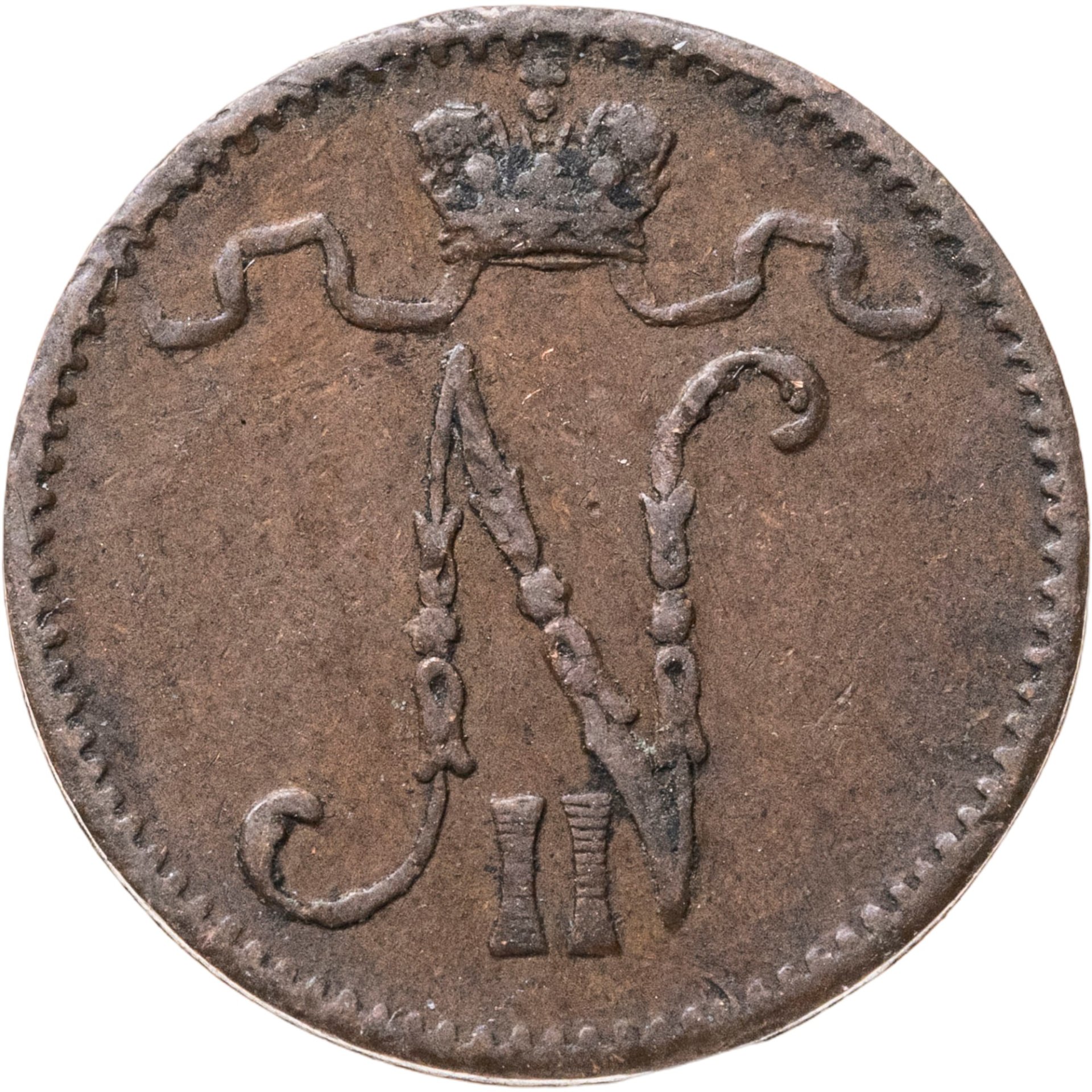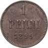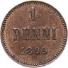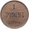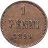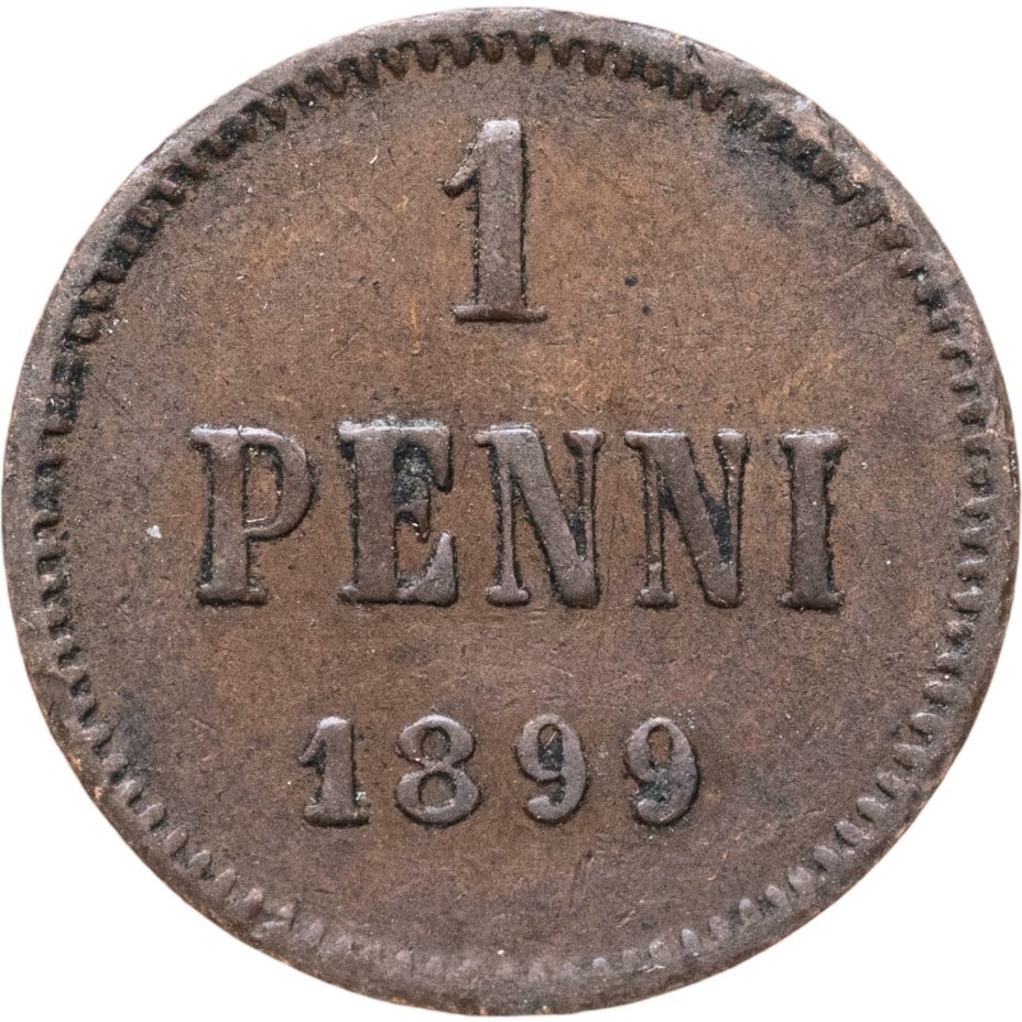 В центре надпись в три строки: «1»│«PENNI»│«1899». По окружности канта имеются рельефные элементы, выполненные в виде зубцов.