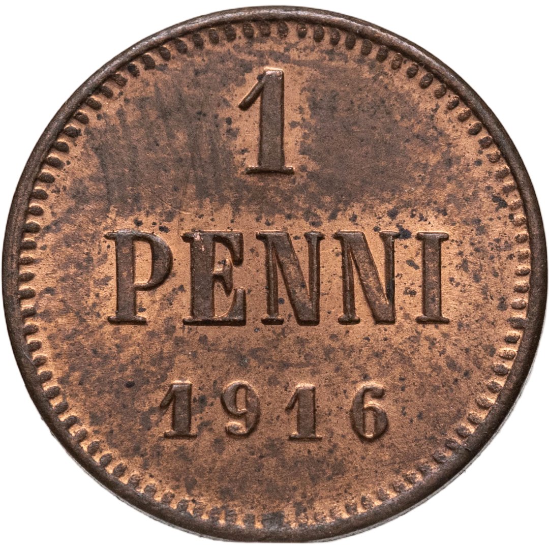 1 пенни (penni) 1916 Российская Финляндия, в слабе Монетник.ру MS64