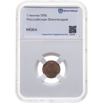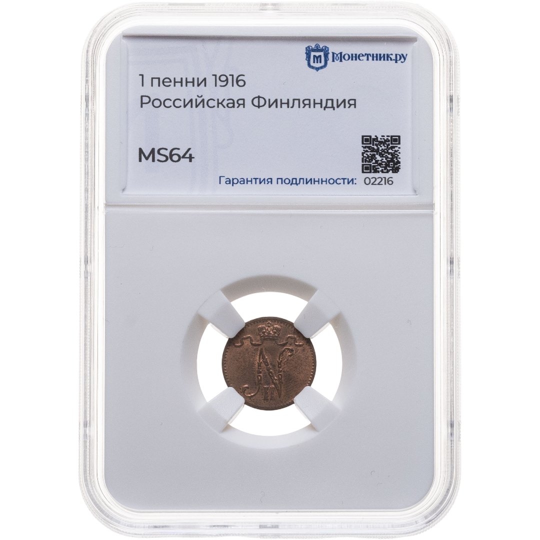 Купить 1 пенни (penni) 1916 Российская Финляндия, в слабе Монетник.ру MS64