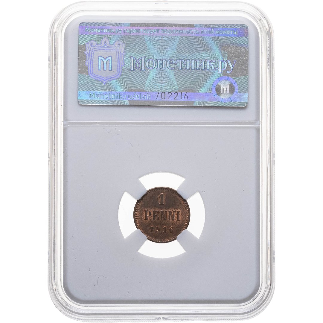 купить 1 пенни (penni) 1916 Российская Финляндия, в слабе Монетник.ру MS64