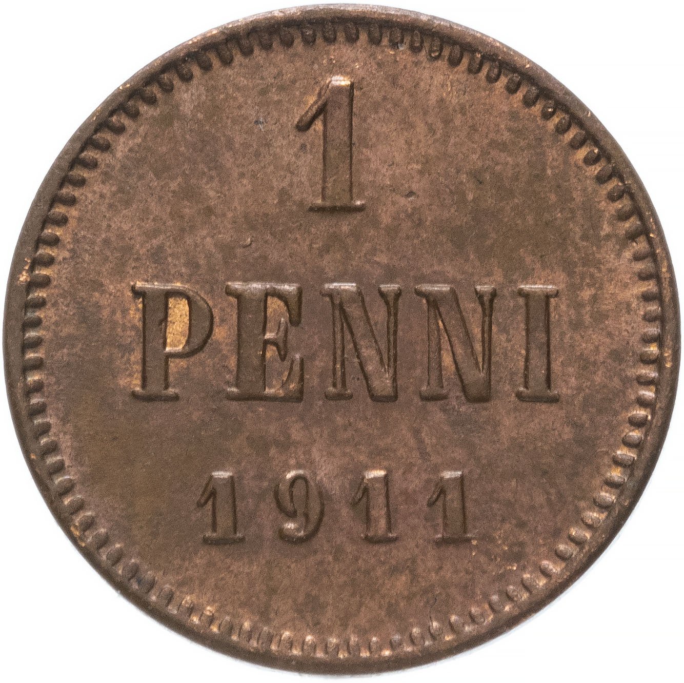 1 пенни (penny) 1911, монета для Финляндии