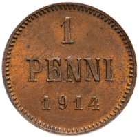 1 пенни (penny) 1914, монета для Финляндии