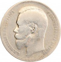 В центре профильный портрет влево императора Николая II. Слева надпись «Б.М. НИКОЛАЙ II ИМПЕРАТОР», справа - «И САМОДЕРЖЕЦ ВСЕРОСС.». По окружности канта имеются рельефные элементы, выполненные в виде зубцов.