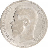 В центре профильный портрет влево императора Николая II. Слева надпись «Б.М. НИКОЛАЙ II ИМПЕРАТОР», справа - «И САМОДЕРЖЕЦ ВСЕРОСС.». По окружности канта имеются рельефные элементы, выполненные в виде зубцов.