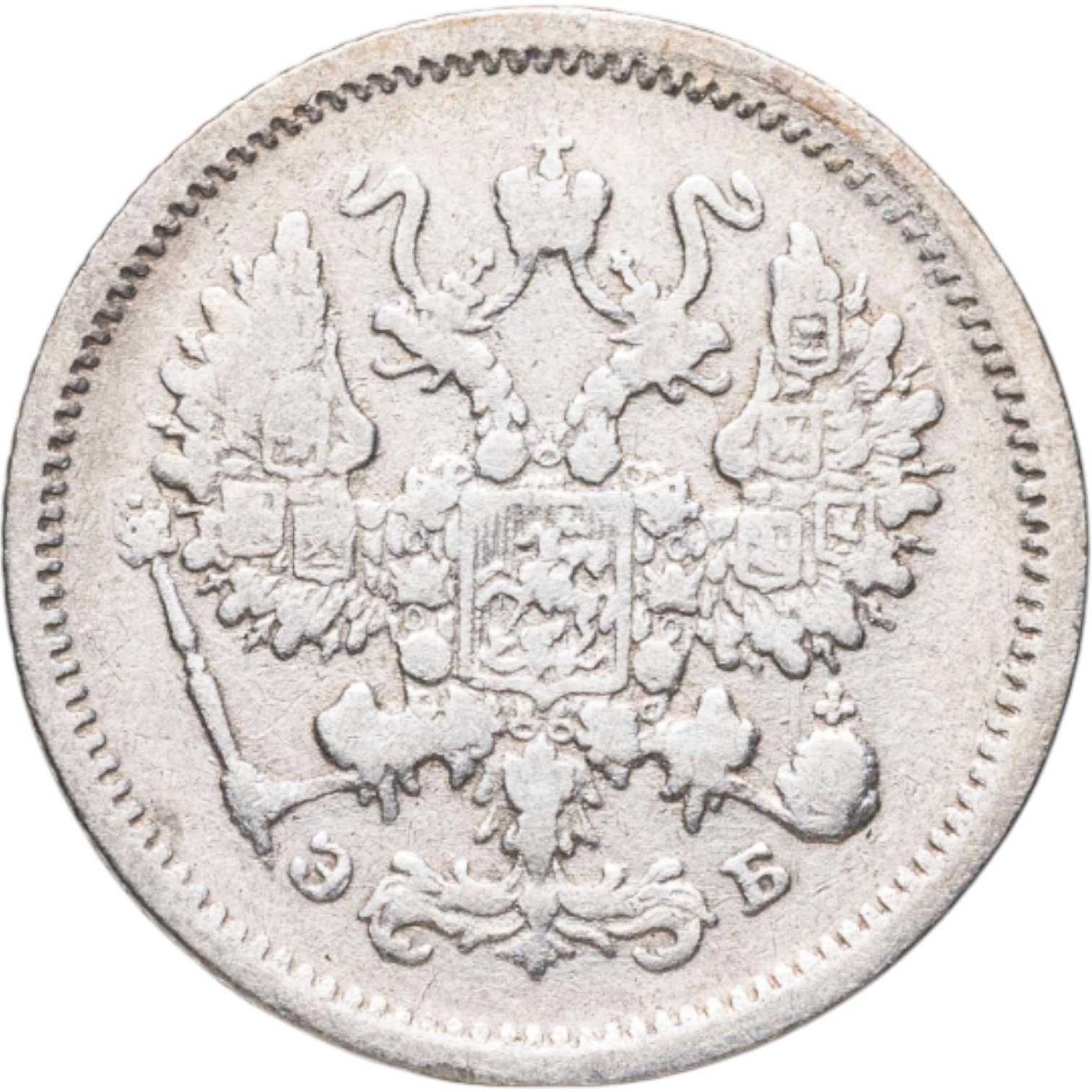 В центре изображен Малый Государственный Герб Российской империи - двуглавый орёл, головы которого увенчаны двумя коронами, третья, большая корона над ними. Все они соединены орденской лентой ордена Св. Апостола Андрея Первозванного. На груди орла расположен Московский герб, в щите изображен Георгий Победоносец с копьем поражающий дракона. Вокруг щита цепь ордена Св. Апостола Андрея Первозванного. На крыльях изображены гербы: Царства Казанского, Польского, Херсонеса Таврического, Астраханского, Сибирского, Грузинского и герб соединенных княжеств Киевского, Новгородского и Владимирского — по 4 на каждое крыло. В правой лапе орла – скипетр, в левой – держава. Под правой лапой – буква «Э», под левой – буква «Б». Инициалы минцмейстера Эликума Бабаянца. По окружности канта имеются рельефные элементы, выполненные в виде зубцов.