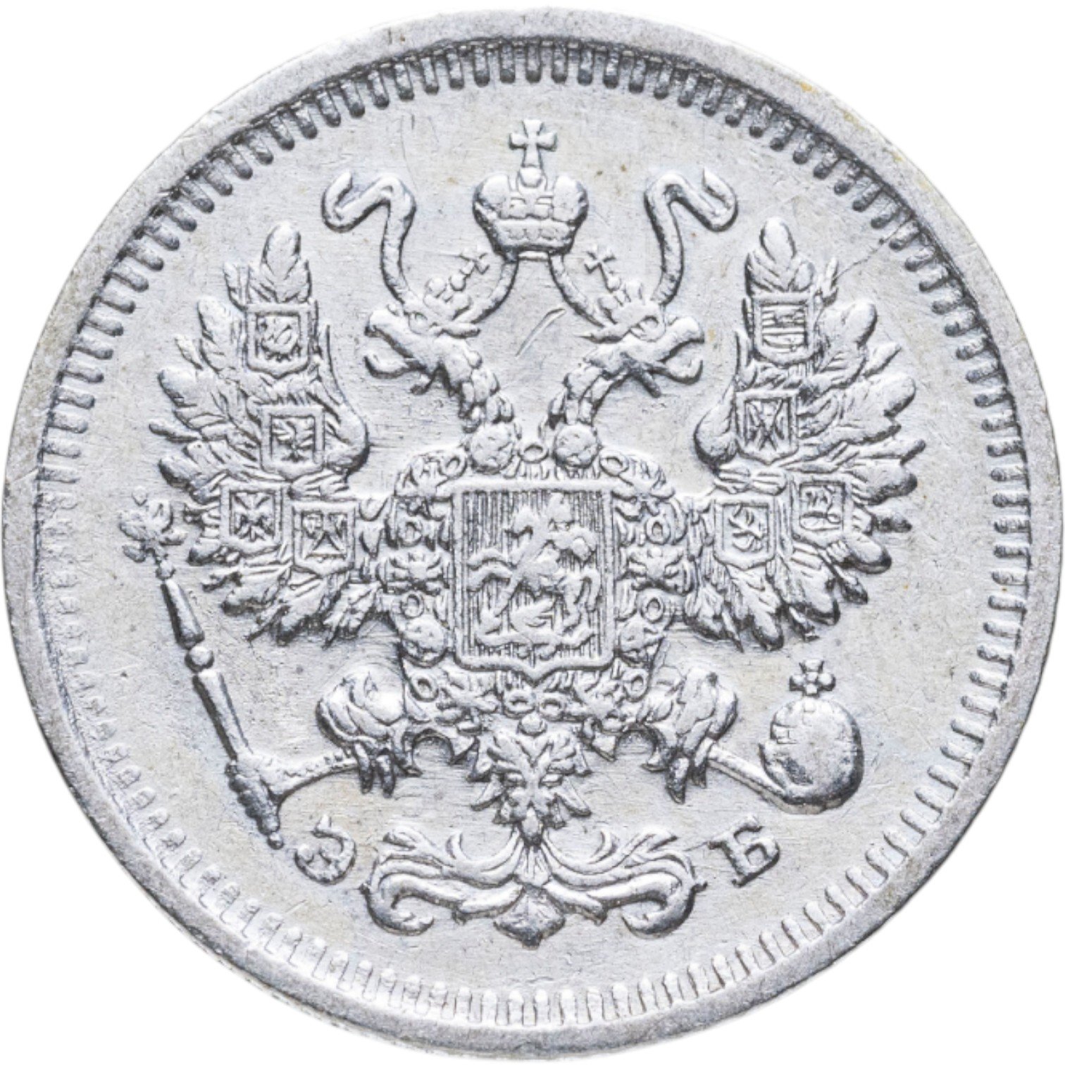 В центре изображен Малый Государственный Герб Российской империи - двуглавый орёл, головы которого увенчаны двумя коронами, третья, большая корона над ними. Все они соединены орденской лентой ордена Св. Апостола Андрея Первозванного. На груди орла расположен Московский герб, в щите изображен Георгий Победоносец с копьем поражающий дракона. Вокруг щита цепь ордена Св. Апостола Андрея Первозванного. На крыльях изображены гербы: Царства Казанского, Польского, Херсонеса Таврического, Астраханского, Сибирского, Грузинского и герб соединенных княжеств Киевского, Новгородского и Владимирского — по 4 на каждое крыло. В правой лапе орла – скипетр, в левой – держава. Под правой лапой – буква «Э», под левой – буква «Б». Инициалы минцмейстера Эликума Бабаянца. По окружности канта имеются рельефные элементы, выполненные в виде зубцов.