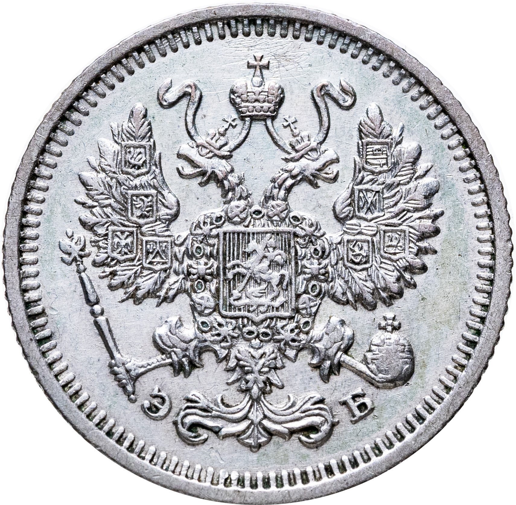 В центре изображен Малый Государственный Герб Российской империи - двуглавый орёл, головы которого увенчаны двумя коронами, третья, большая корона над ними. Все они соединены орденской лентой ордена Св. Апостола Андрея Первозванного. На груди орла расположен Московский герб, в щите изображен Георгий Победоносец с копьем поражающий дракона. Вокруг щита цепь ордена Св. Апостола Андрея Первозванного. На крыльях изображены гербы: Царства Казанского, Польского, Херсонеса Таврического, Астраханского, Сибирского, Грузинского и герб соединенных княжеств Киевского, Новгородского и Владимирского — по 4 на каждое крыло. В правой лапе орла – скипетр, в левой – держава. Под правой лапой – буква «Э», под левой – буква «Б». Инициалы минцмейстера Эликума Бабаянца. По окружности канта имеются рельефные элементы, выполненные в виде зубцов.