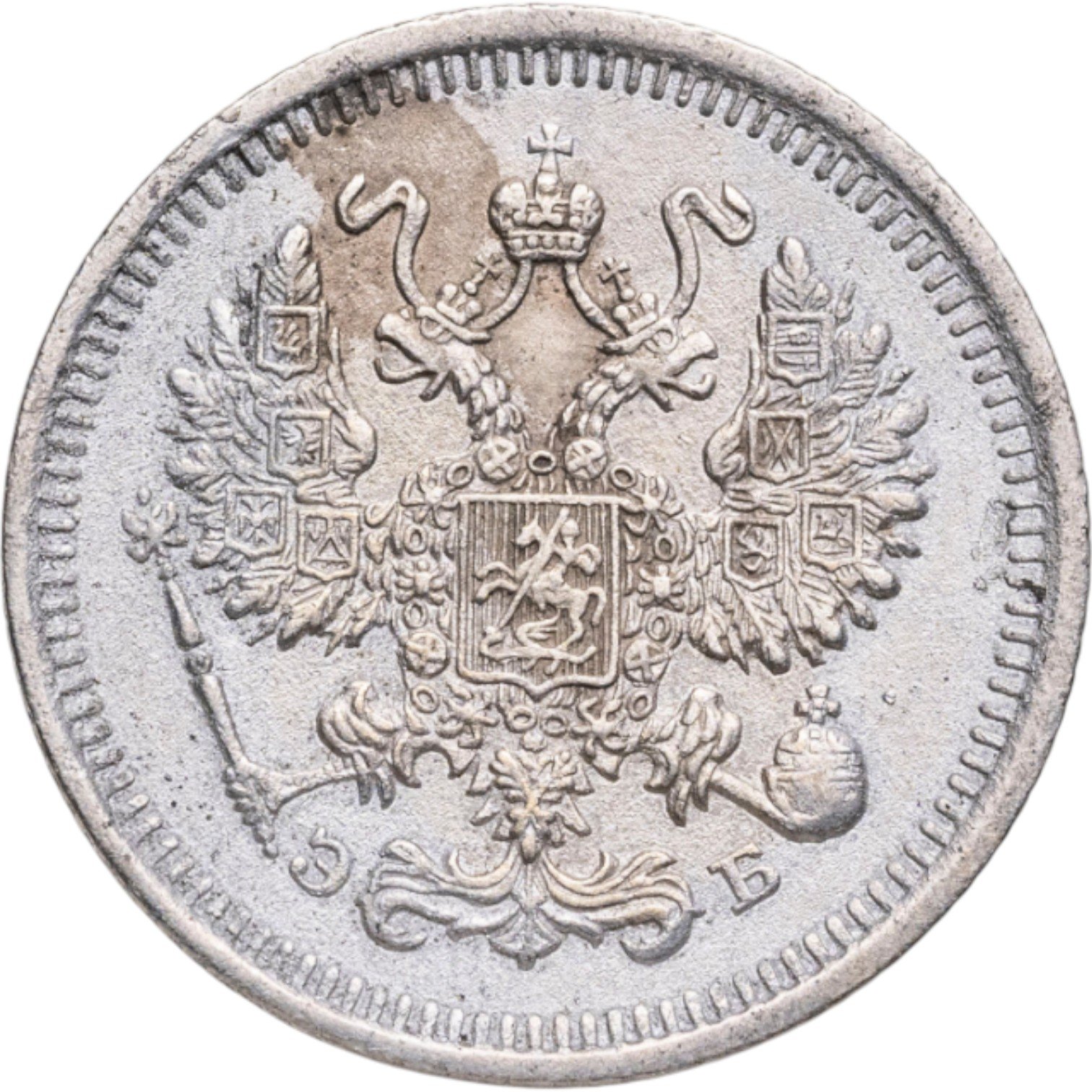 В центре изображен Малый Государственный Герб Российской империи - двуглавый орёл, головы которого увенчаны двумя коронами, третья, большая корона над ними. Все они соединены орденской лентой ордена Св. Апостола Андрея Первозванного. На груди орла расположен Московский герб, в щите изображен Георгий Победоносец с копьем поражающий дракона. Вокруг щита цепь ордена Св. Апостола Андрея Первозванного. На крыльях изображены гербы: Царства Казанского, Польского, Херсонеса Таврического, Астраханского, Сибирского, Грузинского и герб соединенных княжеств Киевского, Новгородского и Владимирского — по 4 на каждое крыло. В правой лапе орла – скипетр, в левой – держава. Под правой лапой – буква «Э», под левой – буква «Б». Инициалы минцмейстера Эликума Бабаянца. По окружности канта имеются рельефные элементы, выполненные в виде зубцов.