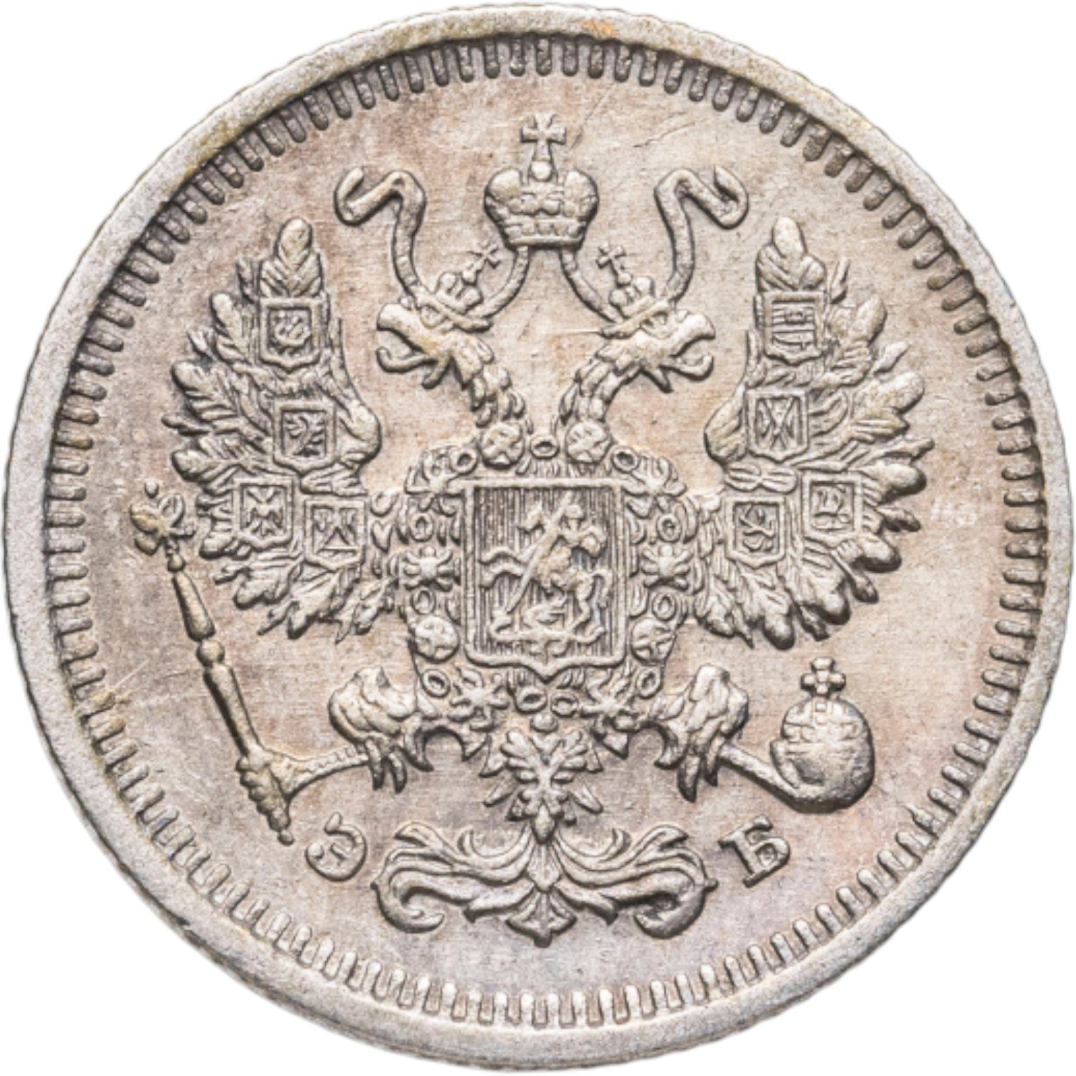 В центре изображен Малый Государственный Герб Российской империи - двуглавый орёл, головы которого увенчаны двумя коронами, третья, большая корона над ними. Все они соединены орденской лентой ордена Св. Апостола Андрея Первозванного. На груди орла расположен Московский герб, в щите изображен Георгий Победоносец с копьем поражающий дракона. Вокруг щита цепь ордена Св. Апостола Андрея Первозванного. На крыльях изображены гербы: Царства Казанского, Польского, Херсонеса Таврического, Астраханского, Сибирского, Грузинского и герб соединенных княжеств Киевского, Новгородского и Владимирского — по 4 на каждое крыло. В правой лапе орла – скипетр, в левой – держава. Под правой лапой – буква «Э», под левой – буква «Б». Инициалы минцмейстера Эликума Бабаянца. По окружности канта имеются рельефные элементы, выполненные в виде зубцов.