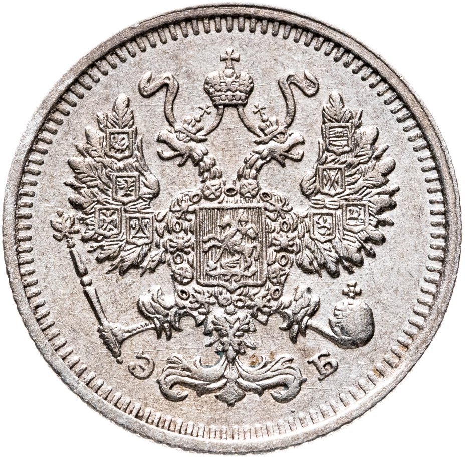 В центре изображен Малый Государственный Герб Российской империи - двуглавый орёл, головы которого увенчаны двумя коронами, третья, большая корона над ними. Все они соединены орденской лентой ордена Св. Апостола Андрея Первозванного. На груди орла расположен Московский герб, в щите изображен Георгий Победоносец с копьем поражающий дракона. Вокруг щита цепь ордена Св. Апостола Андрея Первозванного. На крыльях изображены гербы: Царства Казанского, Польского, Херсонеса Таврического, Астраханского, Сибирского, Грузинского и герб соединенных княжеств Киевского, Новгородского и Владимирского — по 4 на каждое крыло. В правой лапе орла – скипетр, в левой – держава. Под правой лапой – буква «Э», под левой – буква «Б». Инициалы минцмейстера Эликума Бабаянца. По окружности канта имеются рельефные элементы, выполненные в виде зубцов.