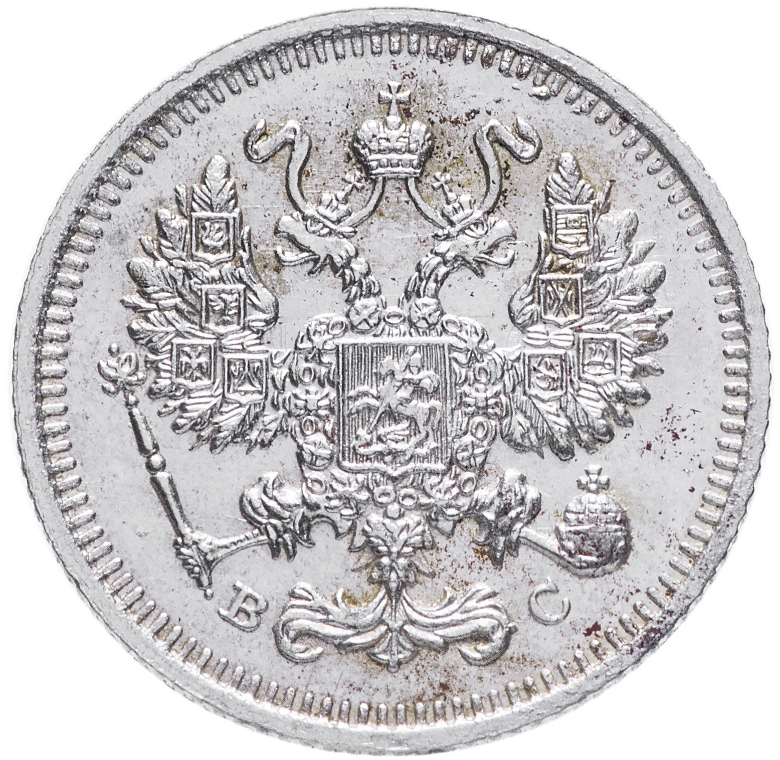 В центре изображен Малый Государственный Герб Российской империи - двуглавый орёл, головы которого увенчаны двумя коронами, третья, большая корона над ними. Все они соединены орденской лентой ордена Св. Апостола Андрея Первозванного. На груди орла расположен Московский герб, в щите изображен Георгий Победоносец с копьем поражающий дракона. Вокруг щита цепь ордена Св. Апостола Андрея Первозванного. На крыльях изображены гербы: Царства Казанского, Польского, Херсонеса Таврического, Астраханского, Сибирского, Грузинского и герб соединенных княжеств Киевского, Новгородского и Владимирского — по 4 на каждое крыло. В правой лапе орла – скипетр, в левой – держава. Под правой лапой – буква «В», под левой – буква «С». Инициалы минцмейстера Виктора Смирнова. По окружности канта имеются рельефные элементы, выполненные в виде зубцов.