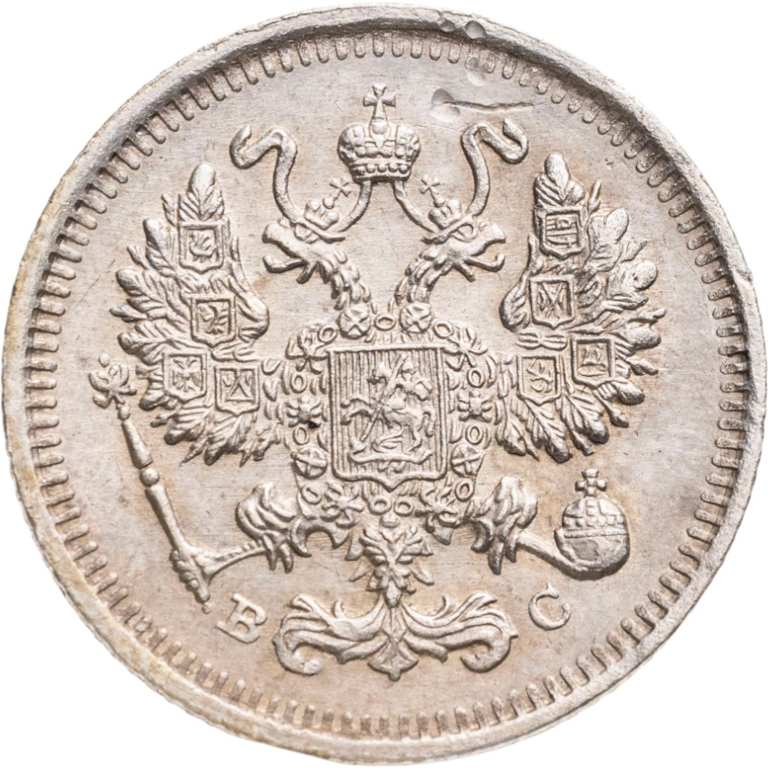В центре изображен Малый Государственный Герб Российской империи - двуглавый орёл, головы которого увенчаны двумя коронами, третья, большая корона над ними. Все они соединены орденской лентой ордена Св. Апостола Андрея Первозванного. На груди орла расположен Московский герб, в щите изображен Георгий Победоносец с копьем поражающий дракона. Вокруг щита цепь ордена Св. Апостола Андрея Первозванного. На крыльях изображены гербы: Царства Казанского, Польского, Херсонеса Таврического, Астраханского, Сибирского, Грузинского и герб соединенных княжеств Киевского, Новгородского и Владимирского — по 4 на каждое крыло. В правой лапе орла – скипетр, в левой – держава. Под правой лапой – буква «В», под левой – буква «С». Инициалы минцмейстера Виктора Смирнова. По окружности канта имеются рельефные элементы, выполненные в виде зубцов.