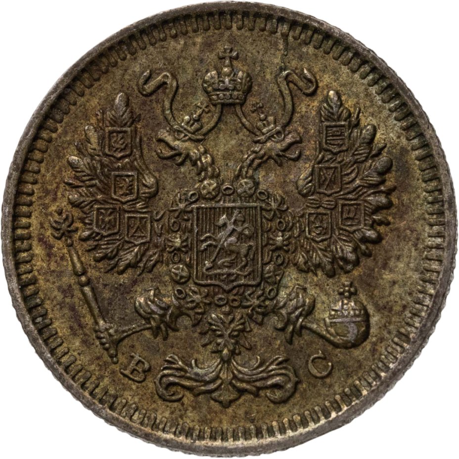 В центре изображен Малый Государственный Герб Российской империи - двуглавый орёл, головы которого увенчаны двумя коронами, третья, большая корона над ними. Все они соединены орденской лентой ордена Св. Апостола Андрея Первозванного. На груди орла расположен Московский герб, в щите изображен Георгий Победоносец с копьем поражающий дракона. Вокруг щита цепь ордена Св. Апостола Андрея Первозванного. На крыльях изображены гербы: Царства Казанского, Польского, Херсонеса Таврического, Астраханского, Сибирского, Грузинского и герб соединенных княжеств Киевского, Новгородского и Владимирского — по 4 на каждое крыло. В правой лапе орла – скипетр, в левой – держава. Под правой лапой – буква «В», под левой – буква «С». Инициалы минцмейстера Виктора Смирнова. По окружности канта имеются рельефные элементы, выполненные в виде зубцов.