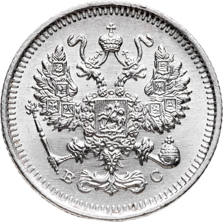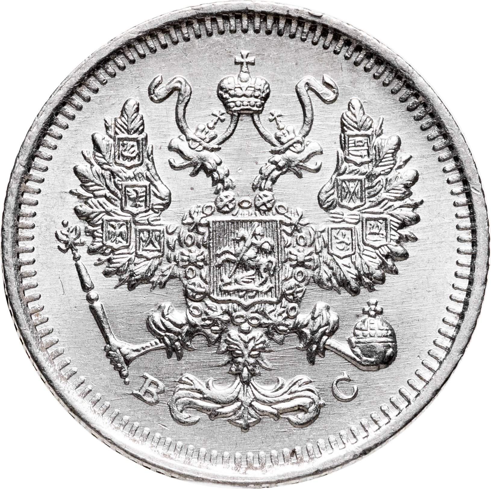 В центре изображен Малый Государственный Герб Российской империи - двуглавый орёл, головы которого увенчаны двумя коронами, третья, большая корона над ними. Все они соединены орденской лентой ордена Св. Апостола Андрея Первозванного. На груди орла расположен Московский герб, в щите изображен Георгий Победоносец с копьем поражающий дракона. Вокруг щита цепь ордена Св. Апостола Андрея Первозванного. На крыльях изображены гербы: Царства Казанского, Польского, Херсонеса Таврического, Астраханского, Сибирского, Грузинского и герб соединенных княжеств Киевского, Новгородского и Владимирского — по 4 на каждое крыло. В правой лапе орла – скипетр, в левой – держава. Под правой лапой – буква «В», под левой – буква «С». Инициалы минцмейстера Виктора Смирнова. По окружности канта имеются рельефные элементы, выполненные в виде зубцов.