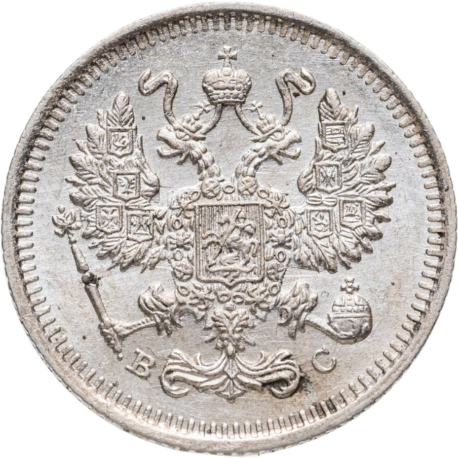 В центре изображен Малый Государственный Герб Российской империи - двуглавый орёл, головы которого увенчаны двумя коронами, третья, большая корона над ними. Все они соединены орденской лентой ордена Св. Апостола Андрея Первозванного. На груди орла расположен Московский герб, в щите изображен Георгий Победоносец с копьем поражающий дракона. Вокруг щита цепь ордена Св. Апостола Андрея Первозванного. На крыльях изображены гербы: Царства Казанского, Польского, Херсонеса Таврического, Астраханского, Сибирского, Грузинского и герб соединенных княжеств Киевского, Новгородского и Владимирского — по 4 на каждое крыло. В правой лапе орла – скипетр, в левой – держава. Под правой лапой – буква «В», под левой – буква «С». Инициалы минцмейстера Виктора Смирнова. По окружности канта имеются рельефные элементы, выполненные в виде зубцов.
