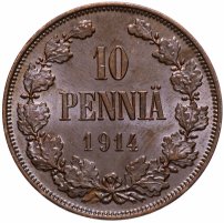 10 пенни 1914 штемпельный блеск (монета для Финляндии в составе Российской Империи)