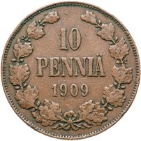 10 пенни (pennia) 1909, монета для Финляндии