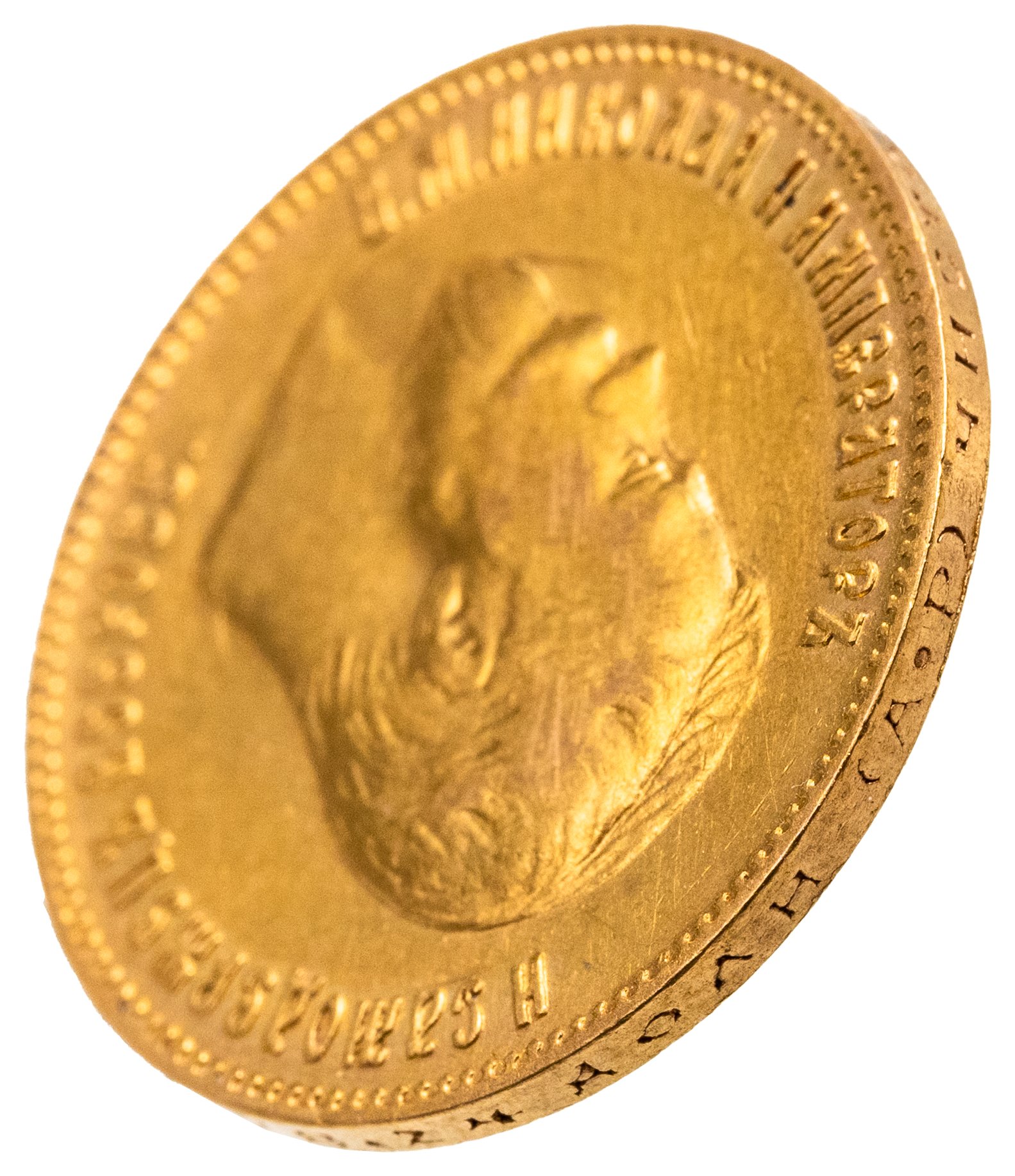 В центре профильный портрет влево императора Николая II. Слева от портрета надпись «Б.М. НИКОЛАЙ II ИМПЕРАТОРЪ», справа - «И САМОДЕРЖЕЦЪ ВСЕРОСС.». По окружности канта имеются рельефные элементы, выполненные в виде зубцов.