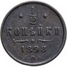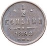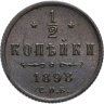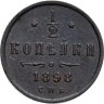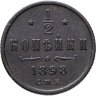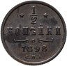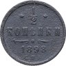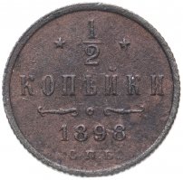 В центре указан номинал «1/2», ограниченный с обеих сторон звездочками. Под цифрой номинала слово — "КОПЕЙКИ". Ниже, расположен декоративный разделитель в виде двух изогнутых линий и небольшой окружности между ними. Под линиями год выпуска монеты "1898" и под ним обозначение монетного двора «С.П.Б.».