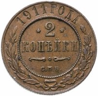 Купить 2 копейки 1911 СПБ