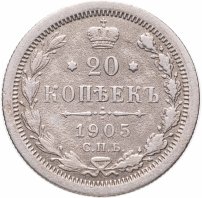 20 копеек 1905 СПБ-АР