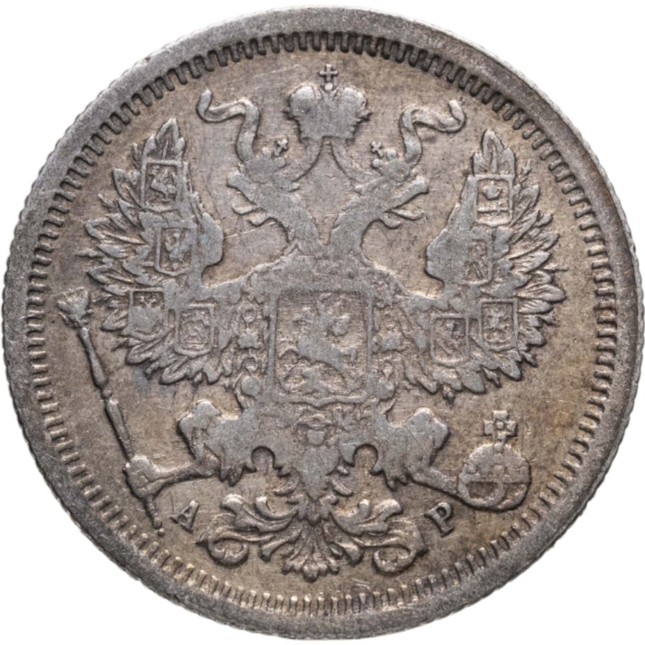 В центре указан номинал - цифра «20», ограниченная с обеих сторон звездочками. Над цифрой – Корона Российской империи. Под цифрой номинала — слово "КОПЕЕК". Ниже, расположен декоративный разделитель в виде двух разнонаправленных фигурных линий и стилизованным из точек крестом между ними. Под разделителем — дата выпуска монеты «1905». Под цифрой даты — обозначение монетного двора «С.П.Б.». Вдоль канта, не доходя до короны, изображен венок из лавровой и дубовой ветвей, которые, в нижней части, перевязаны лентой на узел бантом. По окружности канта имеются рельефные элементы, выполненные в виде зубцов.