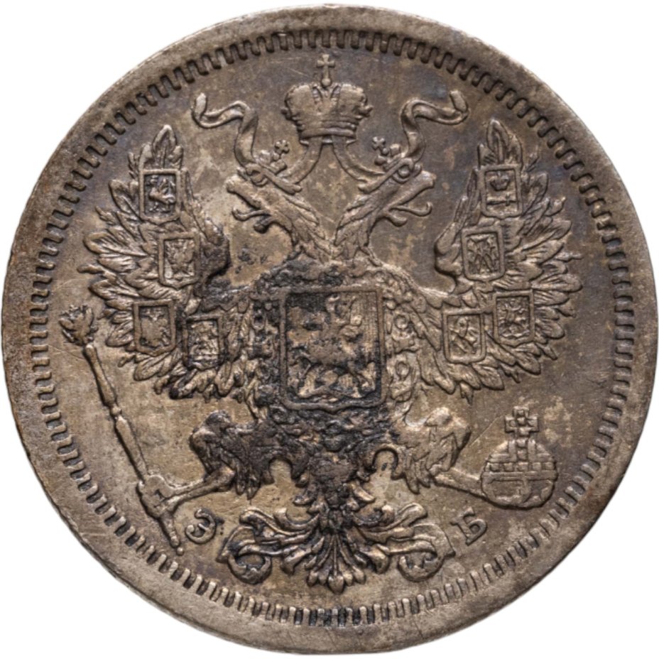 В центре изображен Малый Государственный Герб Российской империи - двуглавый орёл, головы которого увенчаны двумя коронами, третья, большая корона над ними. Все они соединены орденской лентой ордена Св. Апостола Андрея Первозванного. На груди орла расположен Московский герб - щит с изображением Георгия Победоносца, поражающего копьем дракона. Вокруг щита цепь ордена Св. Апостола Андрея Первозванного. На крыльях изображены гербы: Царства Казанского, Польского, Херсонеса Таврического, Астраханского, Сибирского, Грузинского и герб соединенных княжеств Киевского, Новгородского и Владимирского — по 4 на каждое крыло. В правой лапе орла – скипетр, в левой – держава. Под правой лапой – буква «Э», под левой – буква «Б». Инициалы минцмейстера Эликума Бабаянца. По окружности канта имеются рельефные элементы, выполненные в виде зубцов.